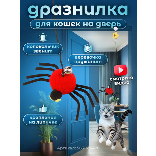 Игрушка для кошек Паучок, интерактивная дразнилка на резинке с липучкой, для котят и котов Без бренда