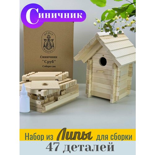 Синичник "Сруб", набор из липы для самостоятельной сборки. DERIYWOODEN