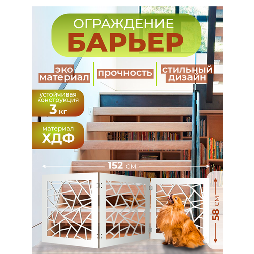 Перегородка для собак в квартиру барьер ограждение 152х58 см. Белая Калейдоскоп RashDecor