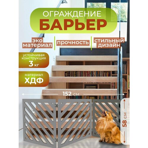 Перегородка для собак в квартиру барьер ограждение 152х58 см. Серая Полосы RashDecor