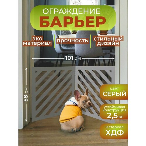 Перегородка для собак в квартиру барьер ограждение 101х58 см. Полосы серая RashDecor