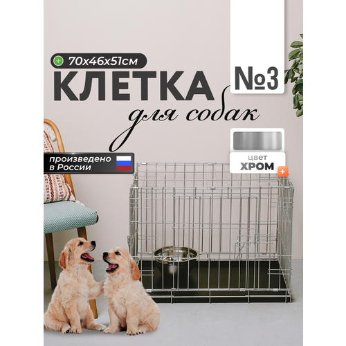 Клетка для собак, кошек, хорьков, кроликов, 70х46х50 см, хром wikizoo