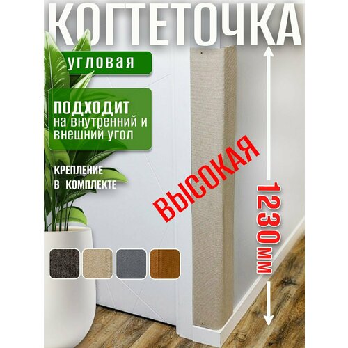 Когтеточка для кошки высокая угловая настенная напольная 123х28 см кремовая Фатя