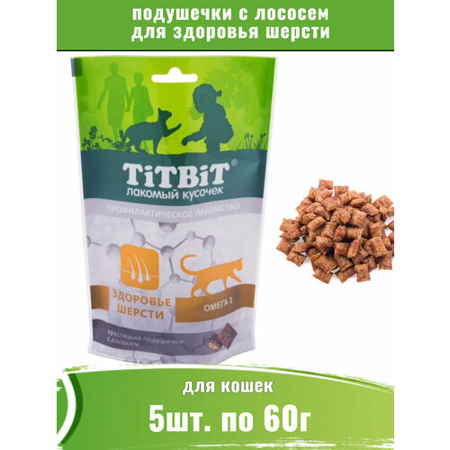 TiTBiT 5шт х 60г хрустящие подушечки для кошек с лососем для здоровья шерсти Titbit