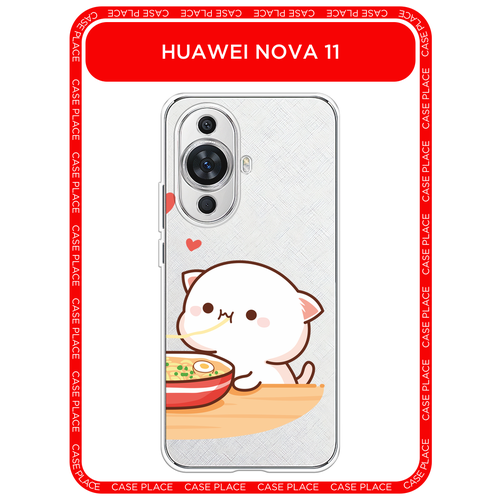 Чехол на Huawei NOVA 11/12S / Хуавей Нова 11/12S с принтом Белый котик с лапшой, прозрачный