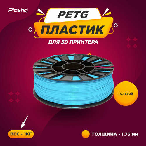 Пластик PETG для 3D печати Plastiq Голубой, 1.75 мм, 1 кг.