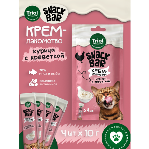 Лакомства для кошек "Крем из курицы с креветкой", 40г, серия SNACK BAR Triol