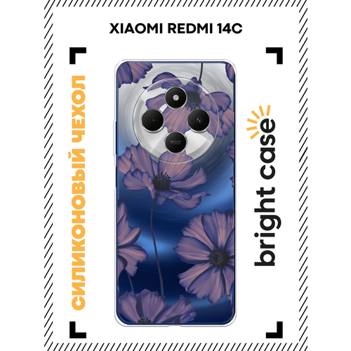 Чехол на Xiaomi Redmi 14C/Poco C75 4G / Сяоми Редми 14C/Поко C75 4G с принтом Фиолетовые космеи, прозрачный