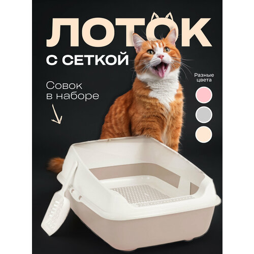Набор для кошек (лоток с высокими бортами 50,5*39*23 см, сеткой и совком) бежевый home