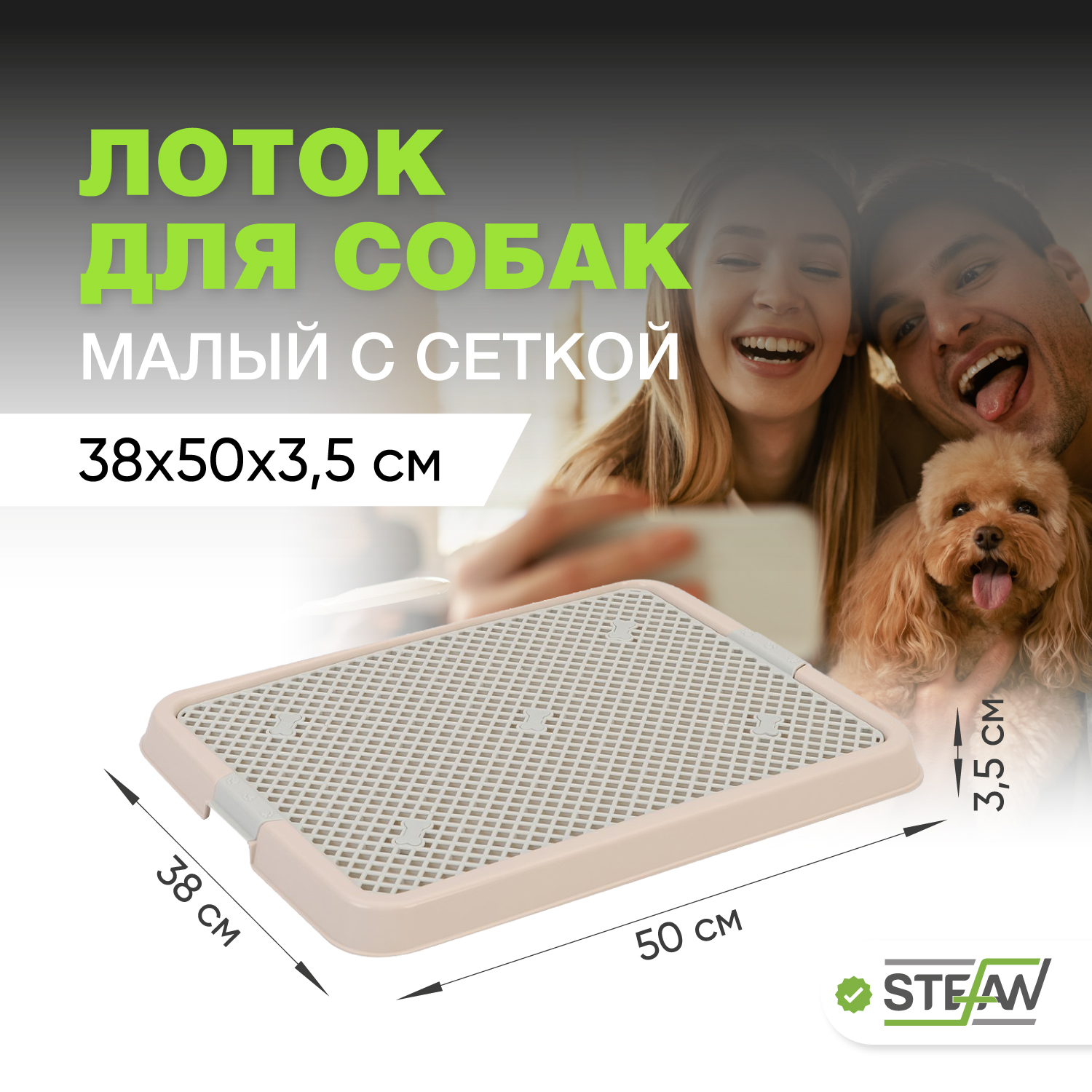 Туалет-лоток с сеткой для собак STEFAN (S) 50х38х3,5см, светло-коричневый 600010694979