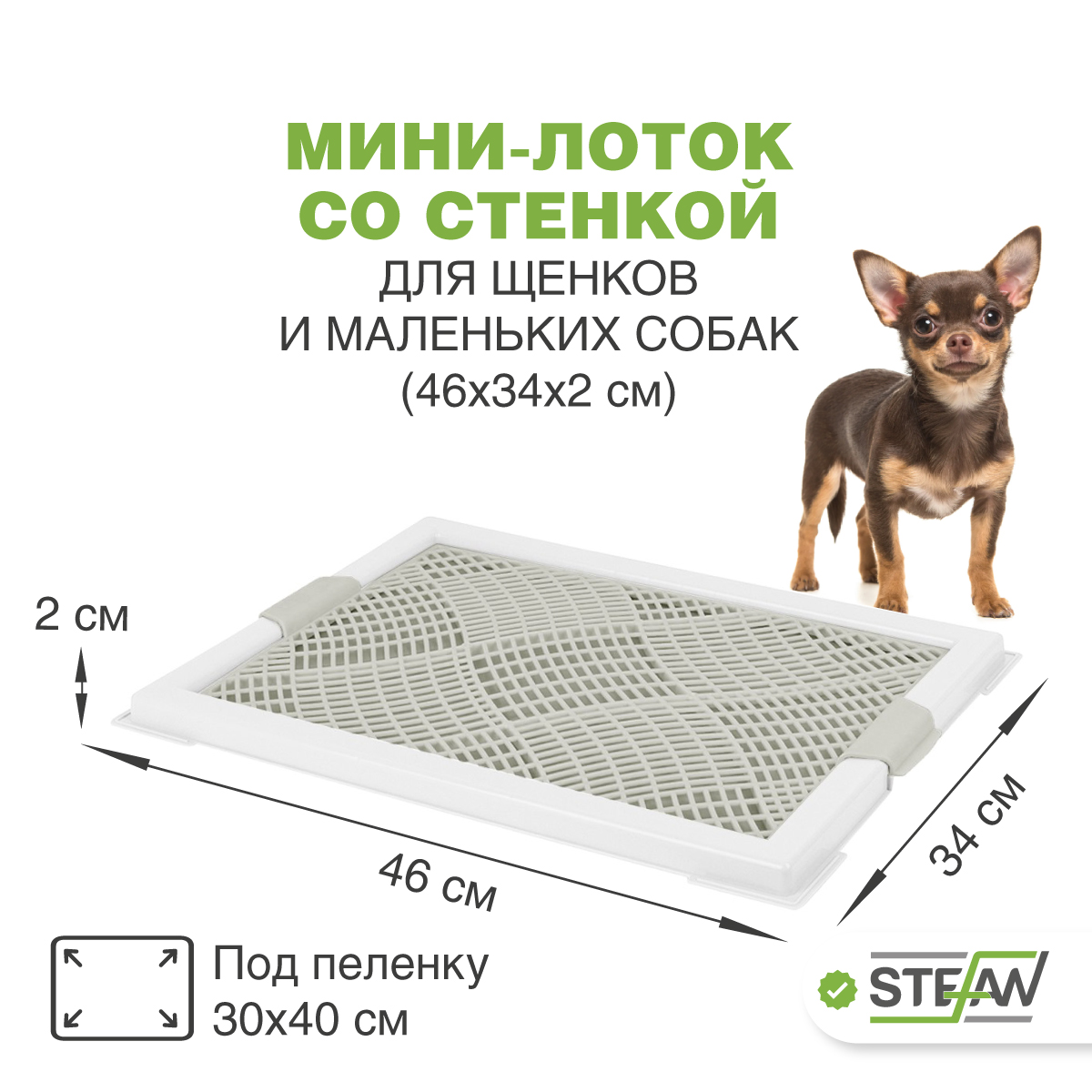 Туалет-лоток для собак Монако STEFAN (S) 48x37x18 – это незаменимый аксессуар для вашего питомца, который обеспечит комфорт и чистоту в доме.