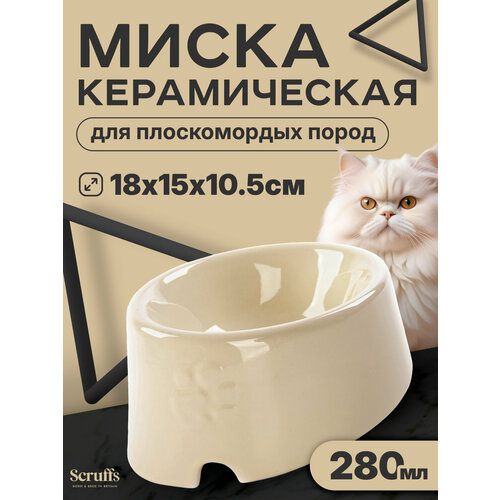 Миска керамическая для плоскомордых пород собак и кошек SCRUFFS "Icon Flat Faced", кремовая, 18х15х10.5см, 280мл (Великобритания) Scruffs
