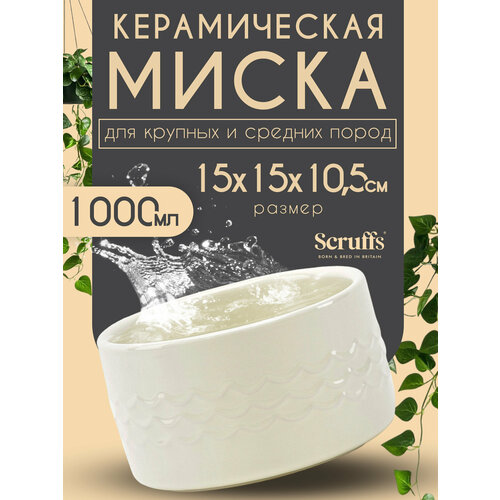 Миска керамическая для собак SCRUFFS "Icon Water", кремовая, 15х15х9см, 1000мл (Великобритания) Scruffs