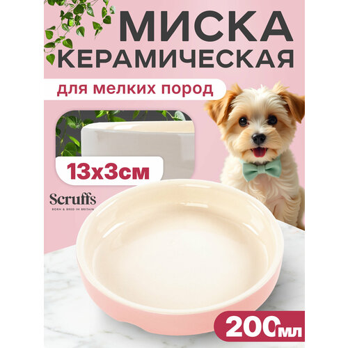 Миска керамическая для мелких пород собак и кошек SCRUFFS "Classic Soucer", розовая, 13х13х3см, 200мл (Великобритания) Scruffs