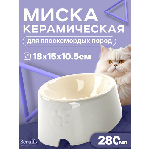 Миска керамическая для плоскомордых пород собак и кошек SCRUFFS "Icon Flat Faced", светло-серая, 18х15х10.5см, 280мл (Великобритания) Scruffs