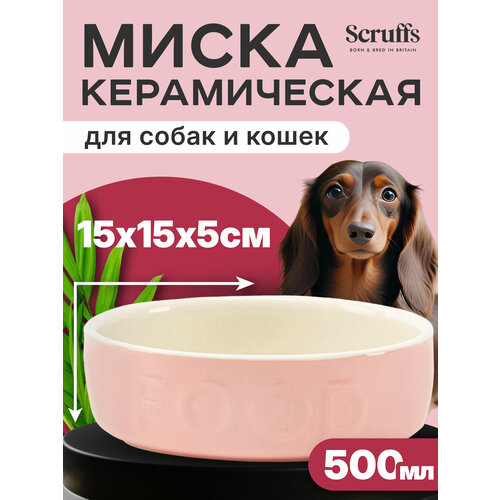 Миска керамическая для собак SCRUFFS "Classic Food", розовая, 19х19х8см, 1600мл (Великобритания) Scruffs