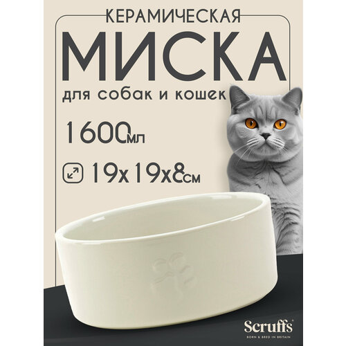 Миска керамическая для собак и кошек SCRUFFS "Scandi", кремовая, 16х16х5см, 500мл (Великобритания) Scruffs