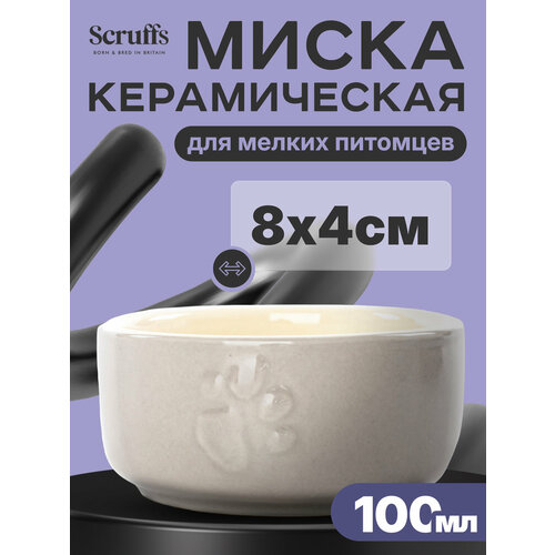 Миска керамическая для мелких пород собак и кошек SCRUFFS "Icon Food", светло-серая, 8х8х4см, 100мл (Великобритания) Scruffs