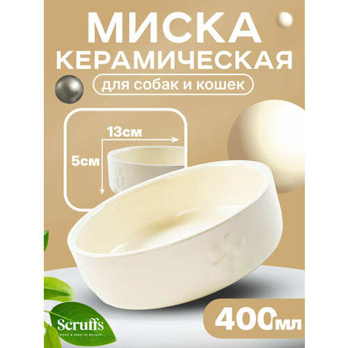 Миска керамическая для мелких пород собак и кошек SCRUFFS "Icon Soucer", кремовая, 13х13х3см, 200мл (Великобритания) Scruffs