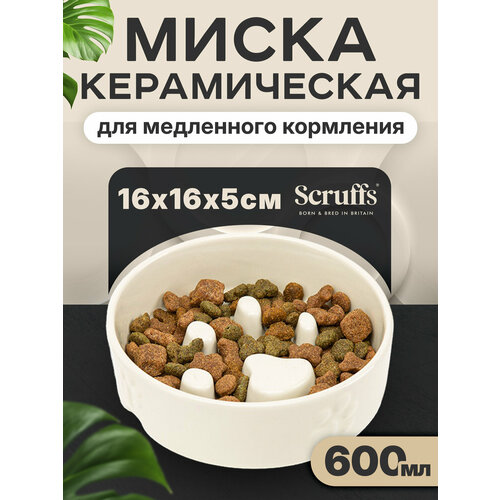 Миска для медленного поедания корма SCRUFFS "Icon Slow Feeder", кремовая, 16см (Великобритания) Scruffs