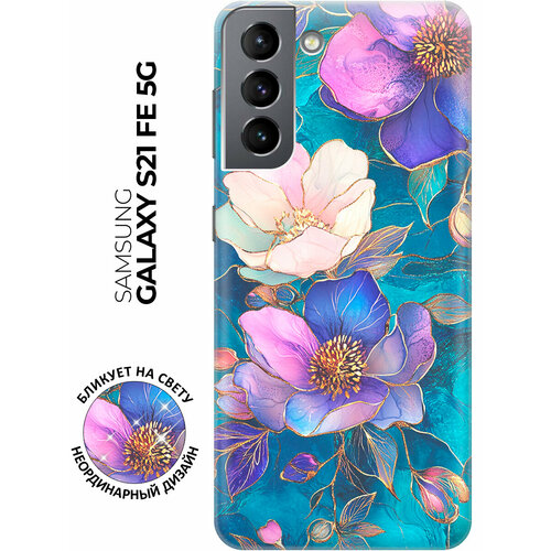 Силиконовый чехол на Samsung Galaxy S21 FE 5G с принтом "Фиолетовые цветы и листья"