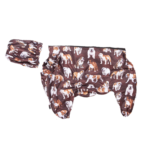 Комплект: Дождевик-комбинезон+Снуд (шапка) для английского бульдога кобеля, мембрана, дизайнерский принт, цвет Английские бульдоги Зооателье Рибафф