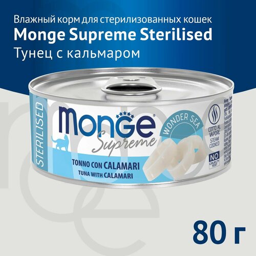 Влажный корм Monge Supreme sterilized для стерилизованных кошек из тунца с кальмаром, консервы 80 г Х 24 шт