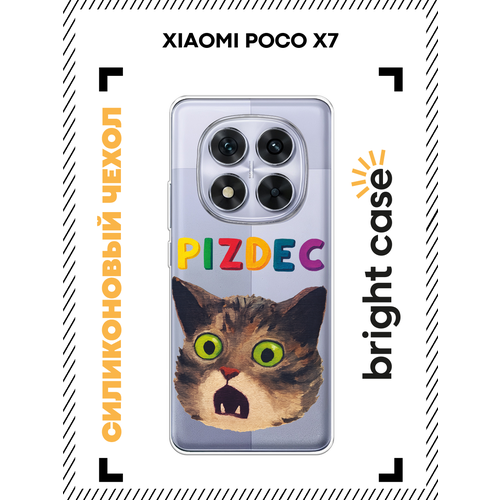Чехол на Xiaomi Poco X7/Redmi Note 14 Pro 5G / Сяоми Поко Х7 / Редми Ноут 14 Про с принтом Испуганный котик с надписью, прозрачный