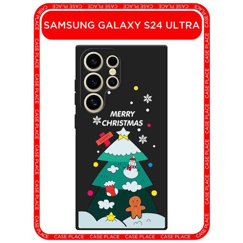 Черный матовый чехол на Samsung Galaxy S24 Ultra / Самсунг S24 Ultra с принтом Christmas tree white