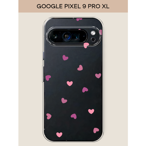 Силиконовый чехол "Фиолетовые и розовые сердечки 3" на Google Pixel 9 Pro XL / Гугл Пиксель 9 Про XL, прозрачный