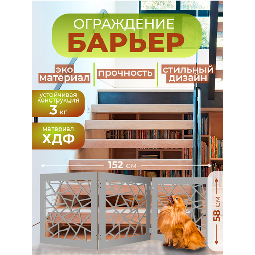 Перегородка для собак в квартиру барьер ограждение 152х58 см. Серая Калейдоскоп RashDecor