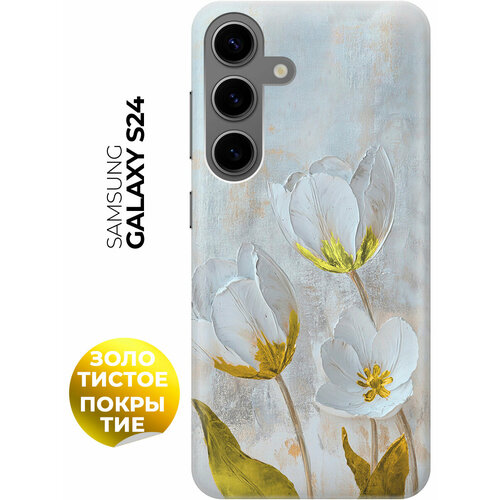 Силиконовый чехол на Samsung Galaxy S24 с принтом "Белые тюльпаны" прозрачный