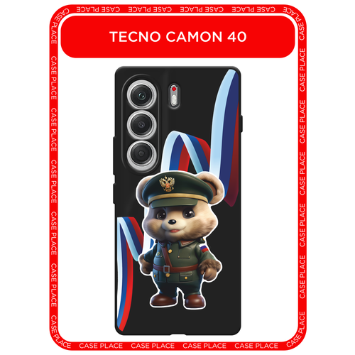 Черный матовый чехол на Tecno Camon 40 / Текно Камон 40 с принтом Мишка в форме 4
