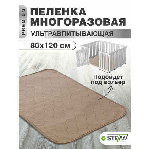 Пелёнка STEFAN (Штефан), ПРЕМИУМ, впитывающая для собак, многоразовая для животных, коричневая 80х120см, WP-801203