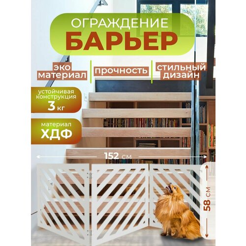 Перегородка для собак в квартиру барьер ограждение 152х58 см. Белая Полосы RashDecor