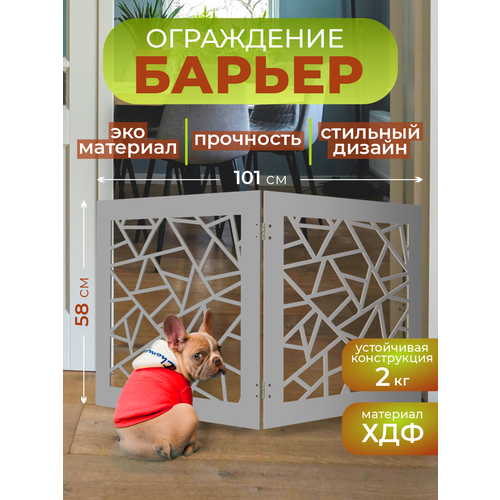 Перегородка для собак в квартиру барьер ограждение 101х58 см. Калейдоскоп серая RashDecor