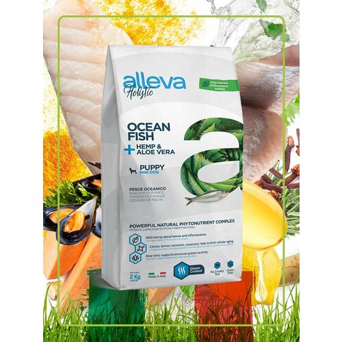 Alleva Holistic Puppy/Junior Ocean Fish Mini сухой корм для щенков и юниоров с океанической рыбой, коноплей и алое вера - 2 кг