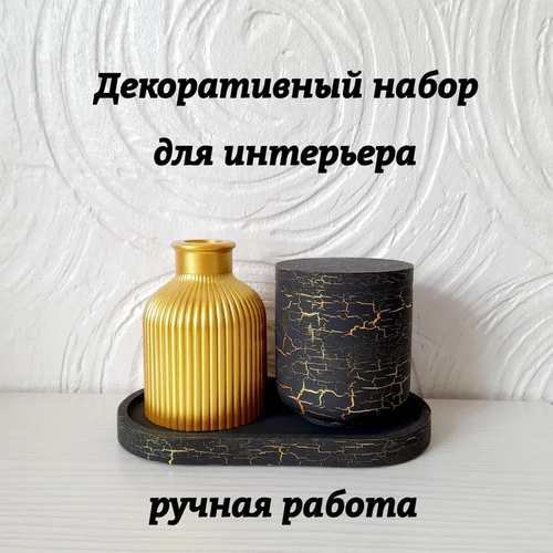 Ваза "Декоративный интерьерный набор из гипса: ваза/ваза для сухоцветов/шкатулка/органайзер/поднос/ручная работа"
