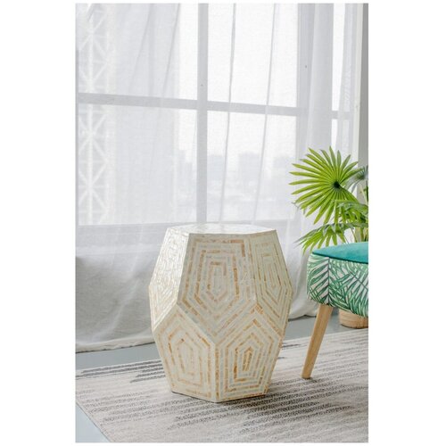 48383 Табурет с отделкой раковинами устриц из филиппинской провинции Capiz 46х46х53см, Glasar