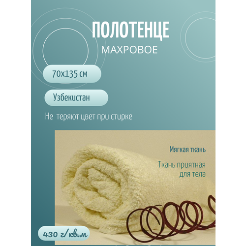 Полотенце банное, для ванны махровое, бежевое, 70*135 см, 1шт.