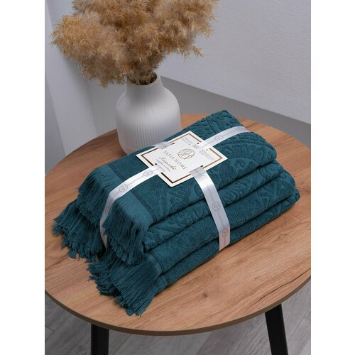 Набор полотенец Safia Knots 4 штуки размер 50х85 см-2шт, 70х135 см-2шт. Цвет: Тёмно-зелёный