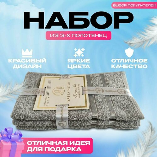 Набор полотенец 30х50, 3 шт, махровые универсальные для лица, рук, кухни цвет: Серая дымка, Safia Home