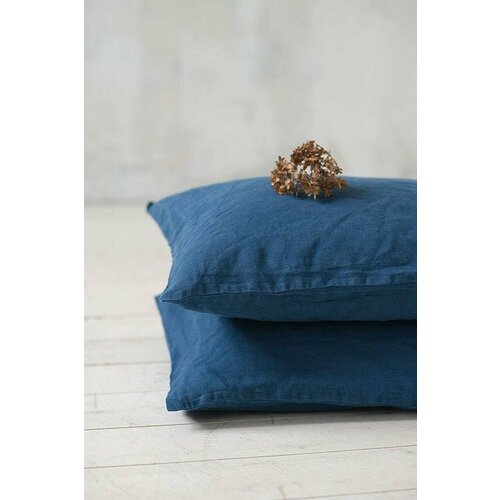 Наволочка 50х70 Синяя наволочка на пуговицах 100% лён умягчённый