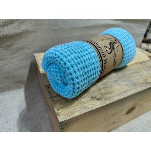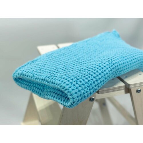 80х150 Бирюзовое вафельное полотенце льняное вафельное умягчённое