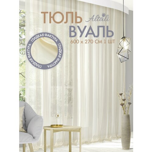 Тюль вуаль для интерьера гостиной, спальни, кухни / 600х270 см, на ленте / дом, дача / Шампань / Altali