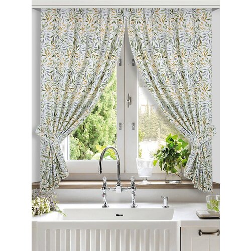 Шторы кухонные / комплект - 2 шт с подхватами / 136*180 см / ткань хлопок / для кухни, дома, дачи / Арт нуво / Altali