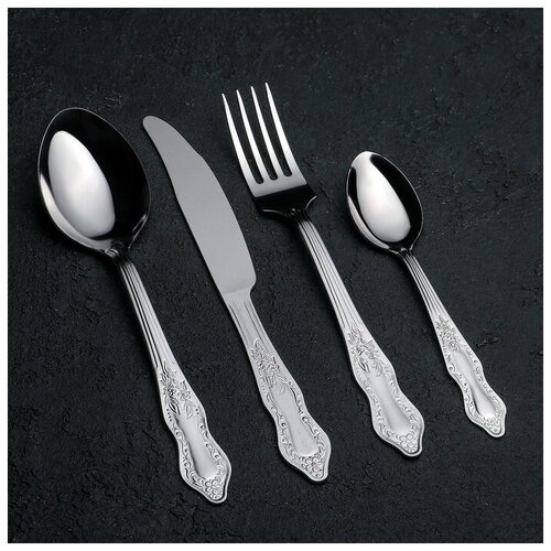 Набор столовых приборов «Славяна», 24 предмета, толщина 1,2 мм, цвет серебряный
