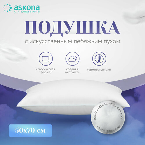 Подушка Аскона 50х70 с искусственным лебяжьим пухом