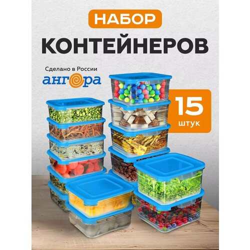 АНГОРА Набор пищевых контейнеров А9113/А9105 700 мл, 1000 мл, 15x14 см, 15 шт.