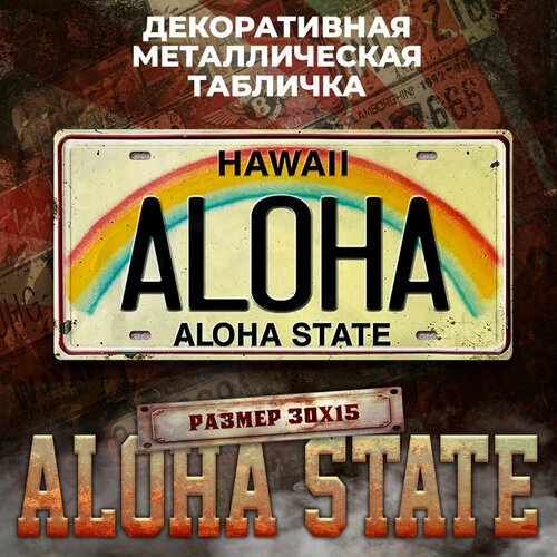 Декоративная металлическая табличка на стену Aloha State винтаж 15х30 см
